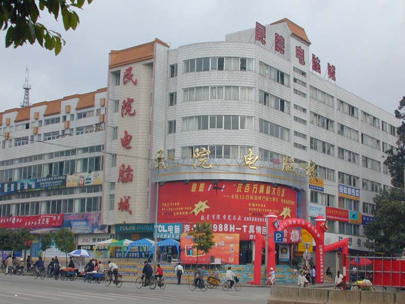 今天,昆明的天空是阴云密布,不过没下雨。我轻松地走遍了一二一大街及圆西路全线,从西往北“云大新世纪电脑城”、“民院电脑城”、“圆西电子广场”、“金太阳电脑城”及以这四家为中心盘踞在一二一大街及圆西路的各电脑经销代理商行,由于时间的关系,没能多看,所以只能向大家作个简单的介绍。