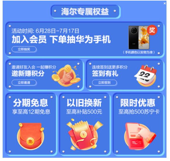 717燃购节期间,苏宁易购与海尔联名推出了新款Super会员卡,年费为149元,可得一张无门槛的150元海尔无敌券,相当于买一单即回本。
