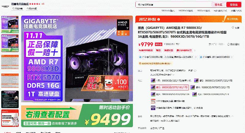品牌锐龙整机大集合!AMD京东自营旗舰店11.11大促进行中