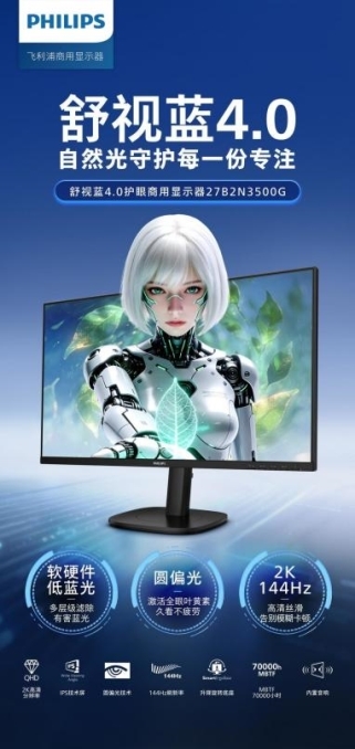 在全民关注健康的新时代,职场办公的健康化升级已成为必然趋势,而长期用眼引发的视觉疲劳,正成为困扰职场人的核心问题。深耕视觉健康领域的飞利浦显示器,精准洞察商用办公场景的护眼需求,在业内首发舒视蓝4.0圆偏光商用护眼显示器27B2N3500G,以技术创新重构办公用眼体验;同时深度践行ESG理念,将环保与健康融入办公全场景,为职场带来全新的绿色健康办公新模式。
