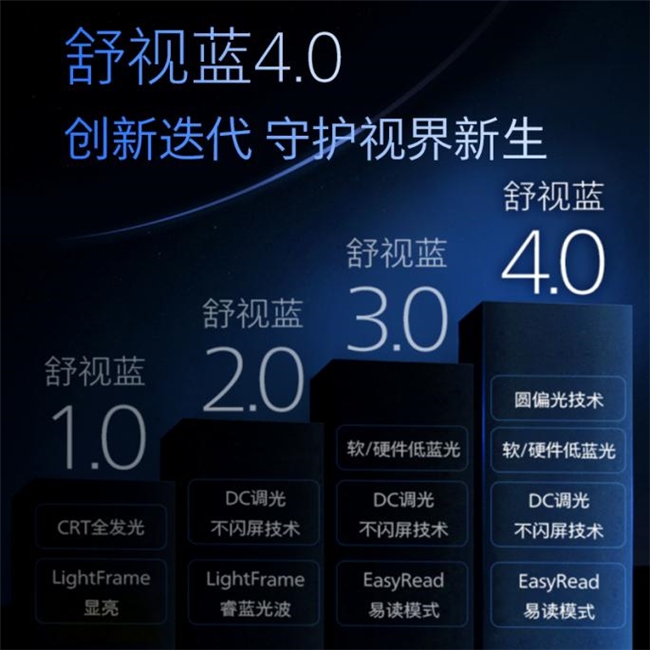舒视蓝4.0技术凝聚前代护眼技术的精华,并非单一技术的简单叠加,而是从底层重构屏幕光线逻辑的创新突破。它不仅获得TÜV莱茵圆偏光认证,还拥有TÜV Eyesafe认证、TÜV硬件低蓝光认证等多重权威背书,搭配“软件/硬件低蓝光+DC调光不闪屏+EasyRead易读模式”的多重护眼科技,构建起全方位、全维度的护眼体系,为商显行业树立了全新的护眼标杆,让专业护眼成为商用显示器的核心竞争力。