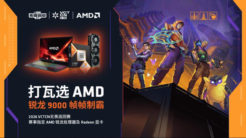 【小熊在线】为期三周的《无畏契约》V26 无畏巡回 CN 联赛(以下简称 “VCT CN”)杭州站暨 2026 无畏契约冠军巡回赛 CN 联赛第一赛段常规赛于杭州西湖体育馆圆满收官。十二支国内顶尖职业战队鏖战多轮,献上数十场极致精彩的 FPS 电竞对决,为线上线下观众带来沉浸式的竞技体验。AMD 作为 VCT CN 官方合作伙伴,以AMD锐龙 7 9800X3D 处理器 + AMD RADEON RX 9070 XT 显卡赛事指定比赛平台为核心,搭配搭载锐龙 9000HX 系列移动处理器的专业游戏笔记本全程硬核赋能,凭借桌面 + 移动双端高性能硬件组合,将千帧电竞体验落地职业赛场与大众体验场景,既为赛事提供了稳定的硬件性能支撑与全面的数据服务,助力选手发挥出色竞技水平,也让江南电竞爱好者近距离感受千帧电竞带来的魅力。