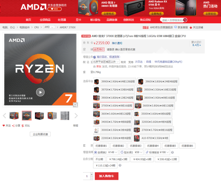 精工细琢匠芯制就 AMD锐龙7 3700X京东热卖
