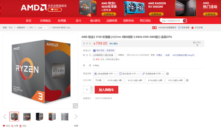 而目前,这款AMD锐龙3 3100已经在天猫和京东同步开卖,售价仅为799元,在性价比方面,可以说达到了极致。而因为这款产品全面的性能表现,无论是学生上网课玩游戏,或是办公族用来处理一些文件,亦或是给老人用来看视频,它都将成为您最好的选择,您还在等什么呢,快点将它收入囊中吧!