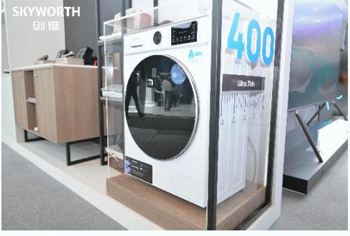 创维滚筒洗衣机,展出产品配备彩色触控屏,容量覆盖6至12公斤,提供母婴护理、快洗、轻柔等多种洗涤模式,并具备UV除菌、高温杀菌、筒自洁等智能功能,全面覆盖不同用户需求。其中40cm超薄洗衣机尤其受到欧洲市场欢迎,成为当季热销产品。