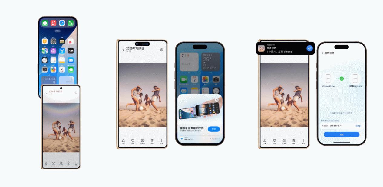长期以来,用户在不同品牌设备间传输文件图片、同步数据时,始终面临着流程繁琐、体验割裂的痛点。此次在跨设备协作领域,荣耀MagicOS 10也实现了令人兴奋的生态破圈,不仅全面兼容安卓设备的互联互传,更是一举打通鸿蒙、iOS与Windows系统,成为行业首个真正意义上做到“全品牌互联”的操作系统。