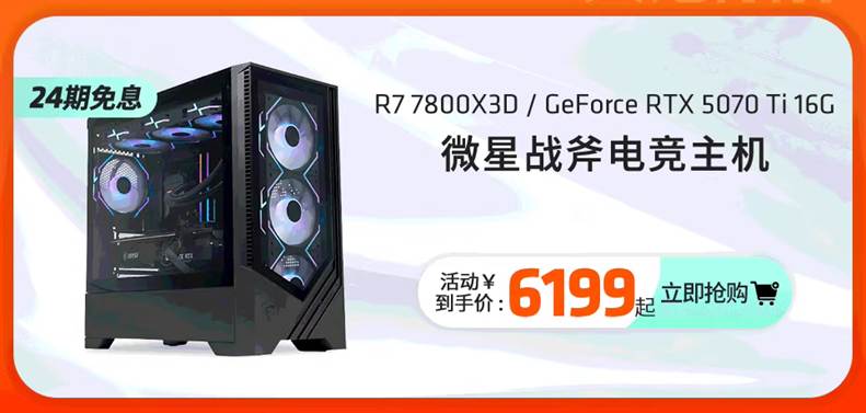 接下来这款微星战斧电竞主机同样采用了锐龙X3D系列处理器,而且包含了7000系列的锐龙7 7800X3D游戏神U,主板方面从微星B850系列主板到X870系列主板应有尽有,显卡同样至高可选RTX 5090D。大家还是可以根据自己的实机使用需求来选到最适合自己的配置。