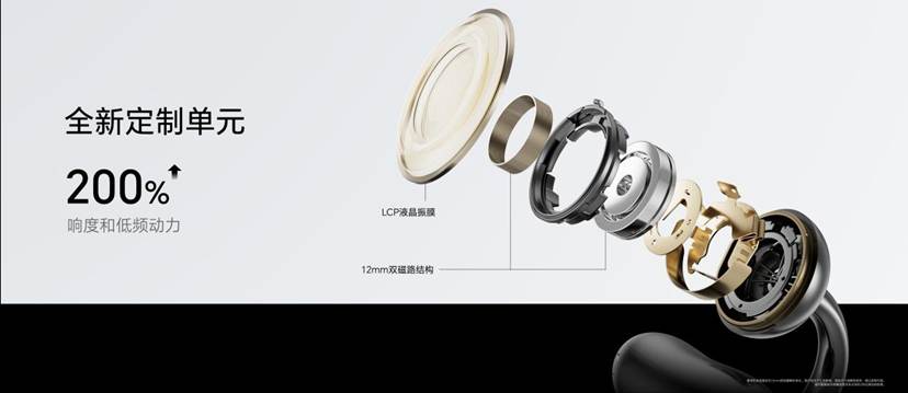 荣耀耳夹耳机2 Pro在音质表现上全面提升,搭载全新定制的12mm大尺寸双磁路单元,以更强推力释放澎湃声浪,呈现清晰立体的听感,完美适配不同环境下的听音需求;搭配全新设计的LCP液晶振膜,有效提升声音密度、降低失真,让音乐细节得到真实还原;结合音效算法,融合Honor空间音频技术,深度提升声音空间纵深感,打造身临其境的空间沉浸式听感体验。