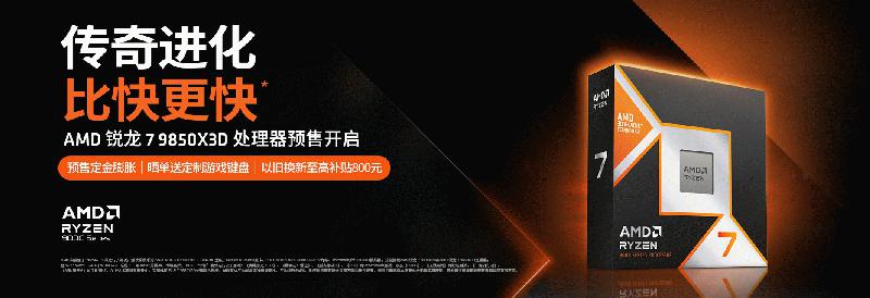 目前AMD锐龙7 9850X3D处理器及组装机产品已经在AMD京东自营旗舰店正式开启预售了,想要第一时间体验“比快更快”的X3D处理器,感受锐龙“传奇进化”的DIY玩家们就请直接前往上面的链接参与预售活动吧!