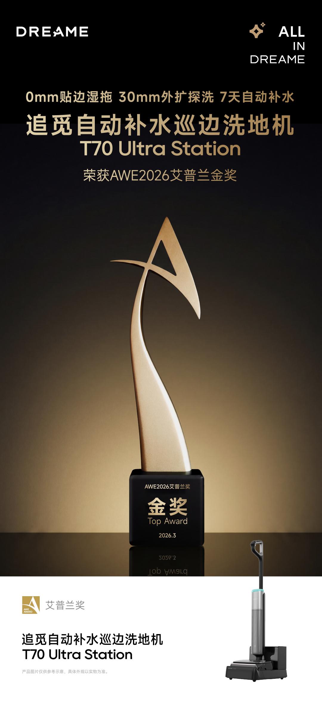 行业最高荣誉!追觅T70 Ultra Station洗地机斩获2026艾普兰金奖