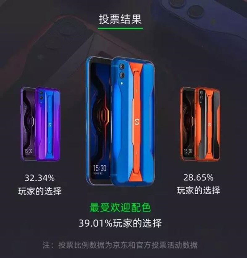 9月23日,正值黑鲨游戏手机2 Pro风行蓝配色机型上市,许多玩家都纷纷表示关注。在风行蓝配色上市前,黑鲨曾进行用户调查,并在京东平台上发起了“黑鲨配色你做主”的票选活动,由用户直接票选出他们最喜爱的配色,尽力满足用户对机型配色个性化的表达。最终,风行蓝配色以39.01%的得票率,高票胜出。