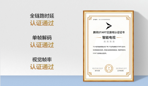 其中,T9E和Q8E一样,具有120Hz的高刷新率屏幕,在游戏性能上表现优异。TCL官方与腾讯START云游戏成立联合实验室,专注于深度开发和体验优化。T9E还是行业首家腾讯START云游戏四星认证主机,所以能够做到全链路时延达到平均68.8ms ,单帧解码平均4.1ms,视觉帧率59.86fps,满足用户的游戏需求。
