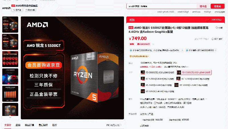 AMD 锐龙5 5500GT处理器京东购买链接: