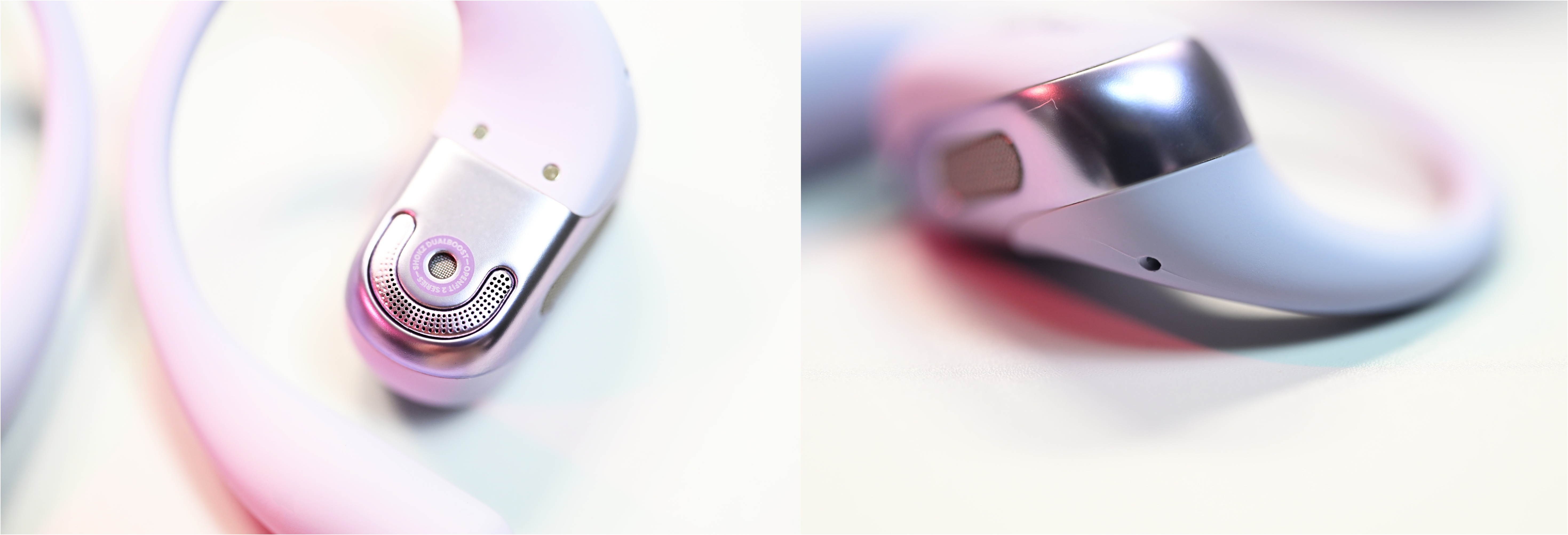 新一代DirectPitch™2.0分频降漏音技术功不可没。高频通过独立出声孔精准入耳,低频由U形环绕出声孔定向传声,实测在办公室60%音量听歌,旁边同事完全听不到音乐声,私密性拉满。开放不入耳的设计还能让我清晰感知环境音,走路、骑车时不用摘耳机也能注意周围情况,安全又实用。