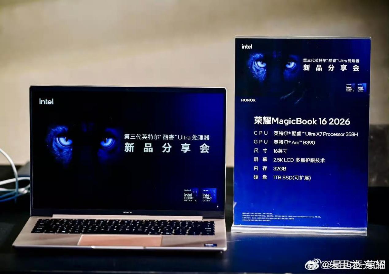 3月12日,第三代英特尔酷睿Ultra处理器新品分享会在上海举办。荣耀2026年轻薄本家族的MagicBook新品悉数亮相,依托第三代英特尔酷睿Ultra处理器在能效和性能上的双重提升,带来轻薄本续航、性能和AI能力的全面跃迁,打造办公、创作、娱乐的全新体验。