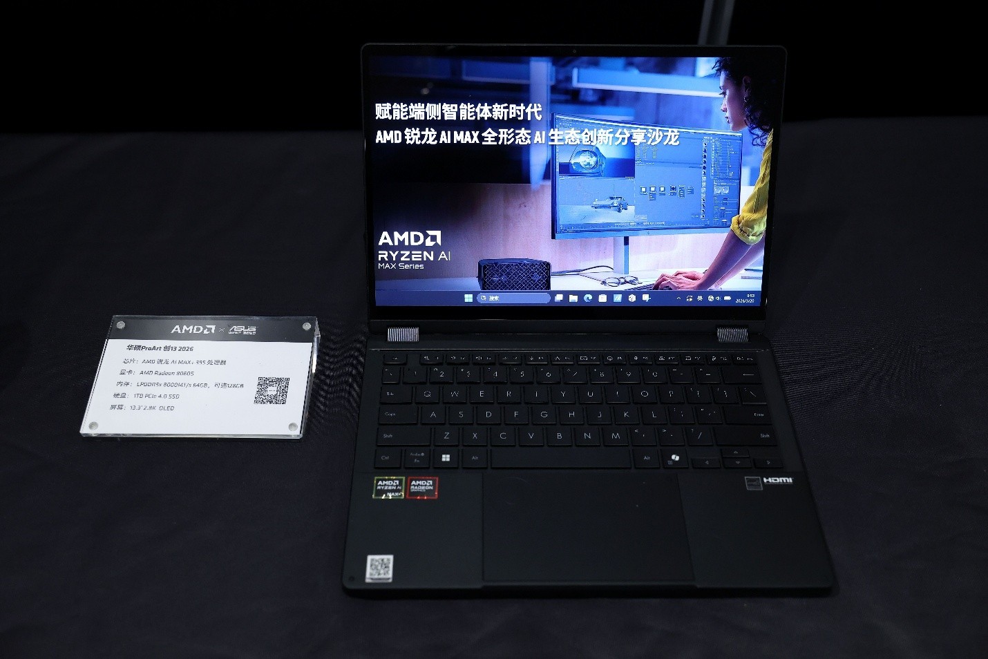 华硕ProArt创13、华硕天选Air 2026、惠普战99Ultra、ROG幻X、玄派玄机16等都已上市或者在现场展示,还有一款全新的搭载锐龙AI Max处理器的掌机壹号本OneXPlayer也可以在现场上手体验。