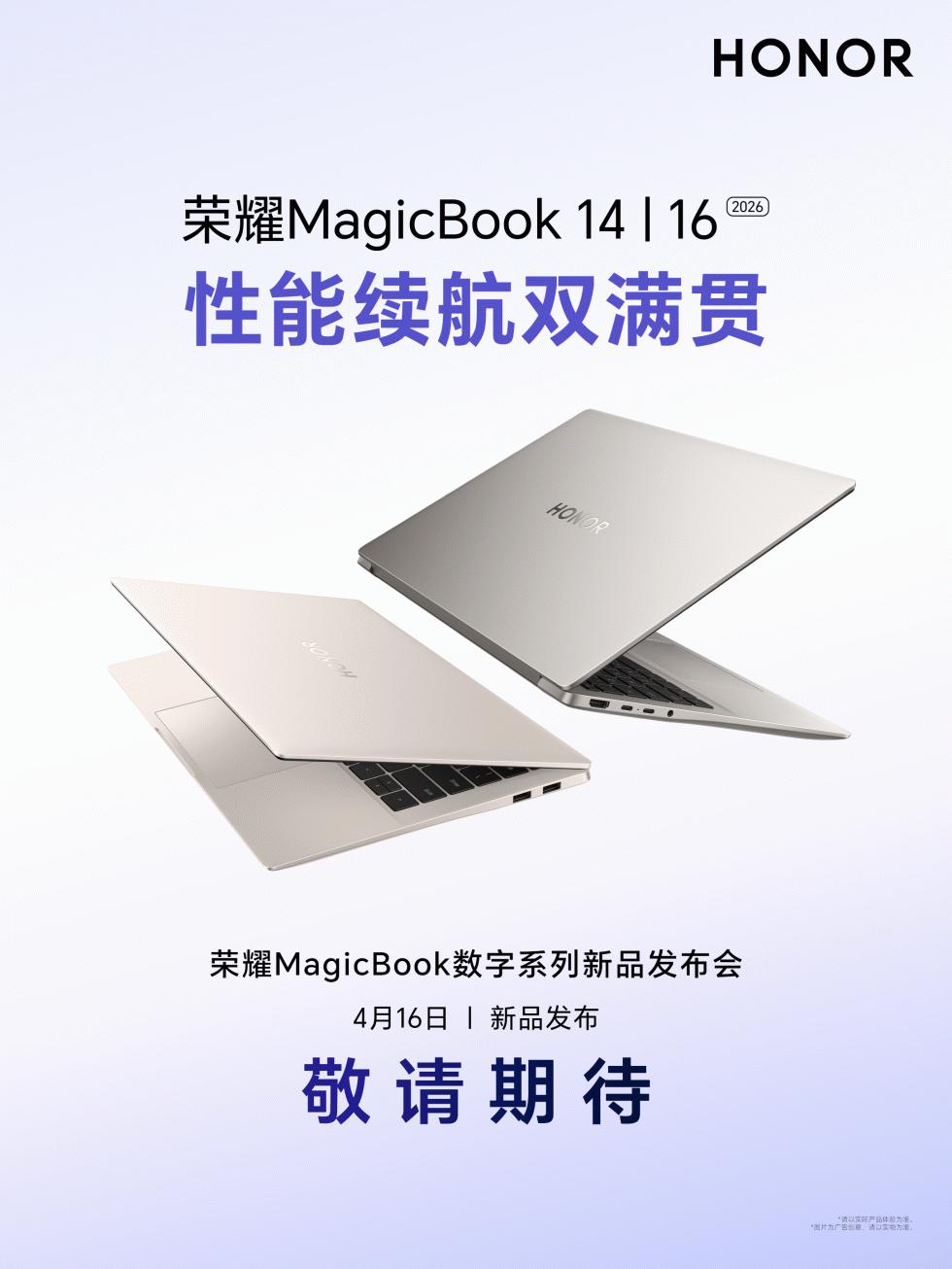荣耀MagicBook系列2026官宣:数字系列定档4月16日