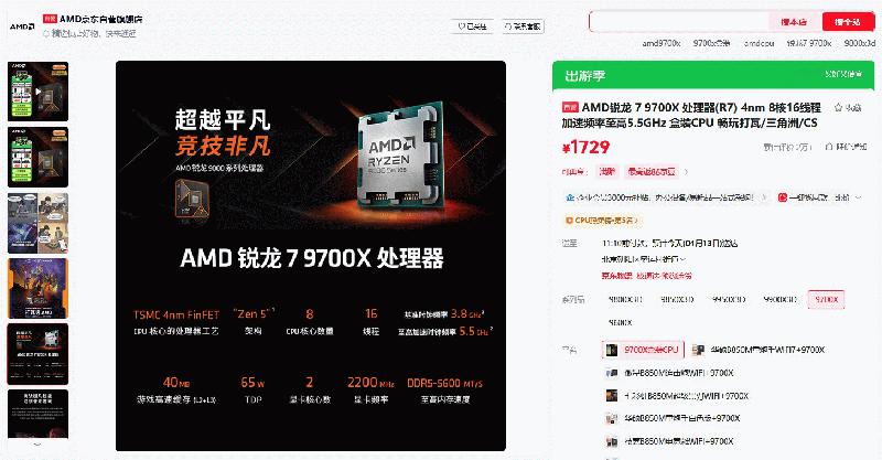 目前AMD 锐龙7 9700X处理器在在京东自营旗舰店的最新报价是1729元,成为AMD京东自营旗舰店会员还有0元入会抽100元E卡,首购返666京豆和晒单抽AMD定制咖啡杯,加购商品送抽织带挂绳,下单抽AMD信仰周边礼品和冲榜抽电动螺丝刀等活动,近期AMD 锐龙7 9700X处理器的价格再度调低,让它的质价比更加凸显出来,给CPU留有2K预算的DIY玩家现在下单省更多,而且不挑内存搭配单通道DDR5 6000内存先使用着也完全没问题。