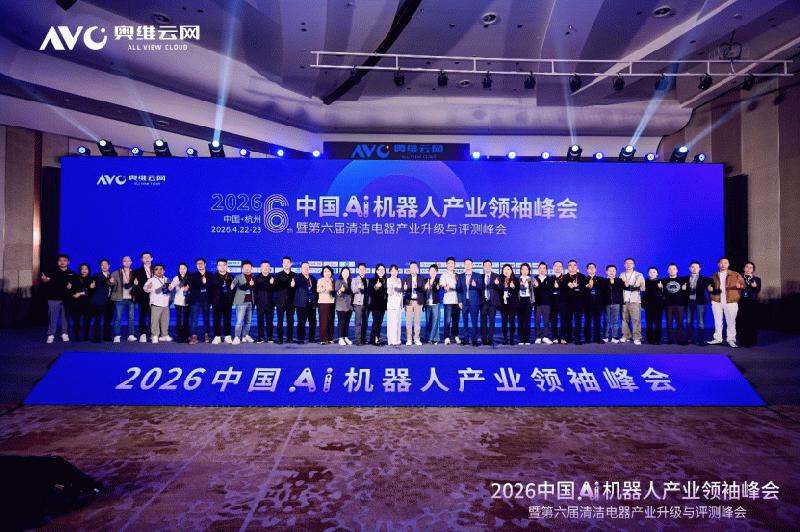 【小熊在线】2026年4月23日,由奥维云网(AVC)主办的“2026中国Ai机器人产业领袖峰会暨第六届清洁电器产业升级与评测峰会”在杭州萧山开元名都大酒店圆满落幕。本次峰会以“进化·跨界·出海”为主题,汇聚了科沃斯、石头科技、云鲸、追觅、宇树科技、乐享科技、白马科技、望圆科技、乐动机器人、全志科技、本末科技、大疆、萤石、银星智能、爱普电器、京蛙科技等百余位具身智能与清洁电器领域领军企业掌舵人,联动淘天集团、京东集团、亚马逊、红星美凯龙、美国赢通等全球渠道巨头,兴富资本、云起资本、金沙江联合资本、锋领资本等投资机构,国泰海通证券、中金证券、招商证券等券商代表以及核心供应链、权威媒体、行业智库精英共近200余人,围绕品类跨界、全球拓展、核心供应链等核心议题展开深度探讨,为家庭服务机器人及清洁电器产业发展注入全新动能。