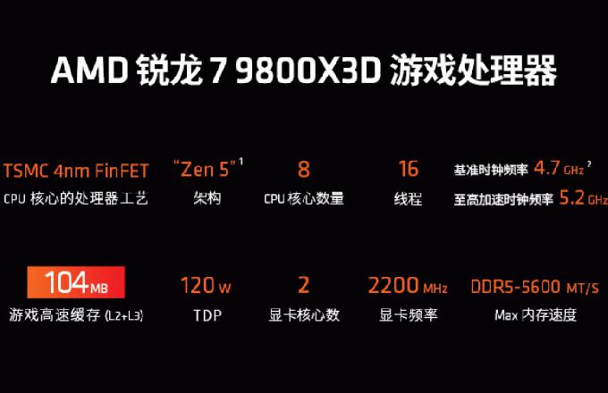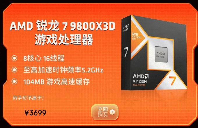 新年游戏攒机唯一真神 AMD 锐龙7 9800X3D热卖推荐